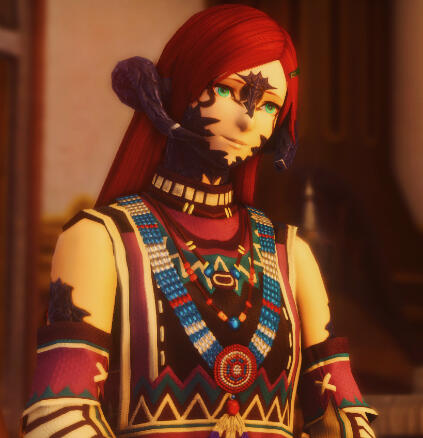 Daughter of the Qalli songhealer who healed his tribe brother years ago, Baatar's sworn spirit oath in thanks was invoked when Taaban wished to travel to Eorzea. Acting as her guardian, the pair traveled to the far western continent, and grew close in their travels.Their bond blossomed into one truly deep and personal when they declared their feelings for each other, and warrior and songhealer became partners in the heart - she his 'moonsong' and he her 'dearheart'.
